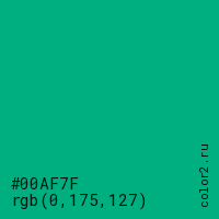 Цвет #00AF7F в цветовой модели RGB обозначается тремя октетами (0, 175, 127) в десятичном формате и #00AF7F в шестнадцатиричном (hex) формате, которые являются интенсивностью красного 0 (hex 00), интенсивность зелёного 175 (hex AF) и интенсивность синего 127 (hex 7F).