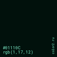 | RGB | rgb(1, 17, 12) |