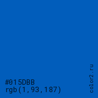 Цвет #015DBB в цветовой модели RGB обозначается тремя октетами (1, 93, 187) в десятичном формате и #015DBB в шестнадцатиричном (hex) формате, которые являются интенсивностью красного 1 (hex 01), интенсивность зелёного 93 (hex 5D) и интенсивность синего 187 (hex BB).