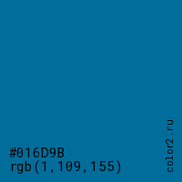 Цвет #016D9B в цветовой модели RGB обозначается тремя октетами (1, 109, 155) в десятичном формате и #016D9B в шестнадцатиричном (hex) формате, которые являются интенсивностью красного 1 (hex 01), интенсивность зелёного 109 (hex 6D) и интенсивность синего 155 (hex 9B).