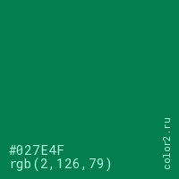 | RGB | rgb(2, 126, 79) |