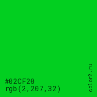 | RGB | rgb(2, 207, 32) |
