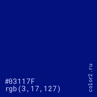 | RGB | rgb(3, 17, 127) |