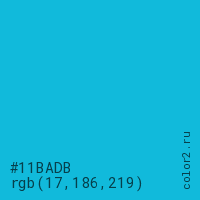 Цвет #11BADB в цветовой модели RGB обозначается тремя октетами (17, 186, 219) в десятичном формате и #11BADB в шестнадцатиричном (hex) формате, которые являются интенсивностью красного 17 (hex 11), интенсивность зелёного 186 (hex BA) и интенсивность синего 219 (hex DB).