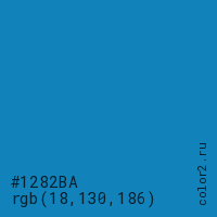 Цвет #1282BA в цветовой модели RGB обозначается тремя октетами (18, 130, 186) в десятичном формате и #1282BA в шестнадцатиричном (hex) формате, которые являются интенсивностью красного 18 (hex 12), интенсивность зелёного 130 (hex 82) и интенсивность синего 186 (hex BA).