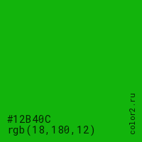 | RGB | rgb(18, 180, 12) |