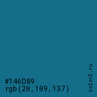 Цвет #146D89 в цветовой модели RGB обозначается тремя октетами (20, 109, 137) в десятичном формате и #146D89 в шестнадцатиричном (hex) формате, которые являются интенсивностью красного 20 (hex 14), интенсивность зелёного 109 (hex 6D) и интенсивность синего 137 (hex 89).