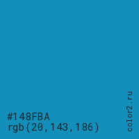 Цвет #148FBA в цветовой модели RGB обозначается тремя октетами (20, 143, 186) в десятичном формате и #148FBA в шестнадцатиричном (hex) формате, которые являются интенсивностью красного 20 (hex 14), интенсивность зелёного 143 (hex 8F) и интенсивность синего 186 (hex BA).