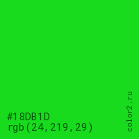| RGB | rgb(24, 219, 29) |