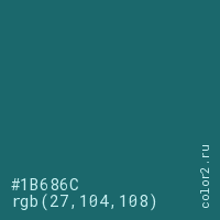 Цвет #1B686C в цветовой модели RGB обозначается тремя октетами (27, 104, 108) в десятичном формате и #1B686C в шестнадцатиричном (hex) формате, которые являются интенсивностью красного 27 (hex 1B), интенсивность зелёного 104 (hex 68) и интенсивность синего 108 (hex 6C).