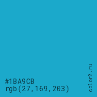 Цвет #1BA9CB в цветовой модели RGB обозначается тремя октетами (27, 169, 203) в десятичном формате и #1BA9CB в шестнадцатиричном (hex) формате, которые являются интенсивностью красного 27 (hex 1B), интенсивность зелёного 169 (hex A9) и интенсивность синего 203 (hex CB).