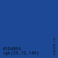 Цвет #1D4895 в цветовой модели RGB обозначается тремя октетами (29, 72, 149) в десятичном формате и #1D4895 в шестнадцатиричном (hex) формате, которые являются интенсивностью красного 29 (hex 1D), интенсивность зелёного 72 (hex 48) и интенсивность синего 149 (hex 95).