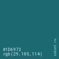 Цвет #1D6972 в цветовой модели RGB обозначается тремя октетами (29, 105, 114) в десятичном формате и #1D6972 в шестнадцатиричном (hex) формате, которые являются интенсивностью красного 29 (hex 1D), интенсивность зелёного 105 (hex 69) и интенсивность синего 114 (hex 72).