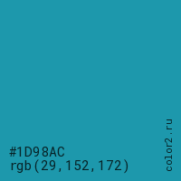Цвет #1D98AC в цветовой модели RGB обозначается тремя октетами (29, 152, 172) в десятичном формате и #1D98AC в шестнадцатиричном (hex) формате, которые являются интенсивностью красного 29 (hex 1D), интенсивность зелёного 152 (hex 98) и интенсивность синего 172 (hex AC).