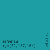 Цвет #1D9DA4 в цветовой модели RGB обозначается тремя октетами (29, 157, 164) в десятичном формате и #1D9DA4 в шестнадцатиричном (hex) формате, которые являются интенсивностью красного 29 (hex 1D), интенсивность зелёного 157 (hex 9D) и интенсивность синего 164 (hex A4).