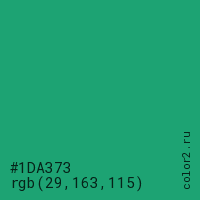 Цвет #1DA373 в цветовой модели RGB обозначается тремя октетами (29, 163, 115) в десятичном формате и #1DA373 в шестнадцатиричном (hex) формате, которые являются интенсивностью красного 29 (hex 1D), интенсивность зелёного 163 (hex A3) и интенсивность синего 115 (hex 73).