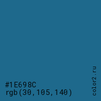 Цвет #1E698C в цветовой модели RGB обозначается тремя октетами (30, 105, 140) в десятичном формате и #1E698C в шестнадцатиричном (hex) формате, которые являются интенсивностью красного 30 (hex 1E), интенсивность зелёного 105 (hex 69) и интенсивность синего 140 (hex 8C).