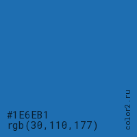 Цвет #1E6EB1 в цветовой модели RGB обозначается тремя октетами (30, 110, 177) в десятичном формате и #1E6EB1 в шестнадцатиричном (hex) формате, которые являются интенсивностью красного 30 (hex 1E), интенсивность зелёного 110 (hex 6E) и интенсивность синего 177 (hex B1).