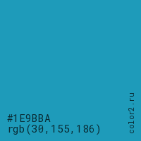 Цвет #1E9BBA в цветовой модели RGB обозначается тремя октетами (30, 155, 186) в десятичном формате и #1E9BBA в шестнадцатиричном (hex) формате, которые являются интенсивностью красного 30 (hex 1E), интенсивность зелёного 155 (hex 9B) и интенсивность синего 186 (hex BA).