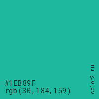 Цвет #1EB89F в цветовой модели RGB обозначается тремя октетами (30, 184, 159) в десятичном формате и #1EB89F в шестнадцатиричном (hex) формате, которые являются интенсивностью красного 30 (hex 1E), интенсивность зелёного 184 (hex B8) и интенсивность синего 159 (hex 9F).