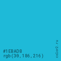 Цвет #1EBAD8 в цветовой модели RGB обозначается тремя октетами (30, 186, 216) в десятичном формате и #1EBAD8 в шестнадцатиричном (hex) формате, которые являются интенсивностью красного 30 (hex 1E), интенсивность зелёного 186 (hex BA) и интенсивность синего 216 (hex D8).