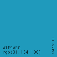 Цвет #1F9ABC в цветовой модели RGB обозначается тремя октетами (31, 154, 188) в десятичном формате и #1F9ABC в шестнадцатиричном (hex) формате, которые являются интенсивностью красного 31 (hex 1F), интенсивность зелёного 154 (hex 9A) и интенсивность синего 188 (hex BC).