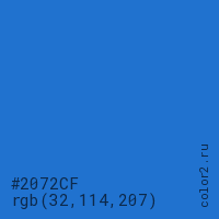 Цвет #2072CF в цветовой модели RGB обозначается тремя октетами (32, 114, 207) в десятичном формате и #2072CF в шестнадцатиричном (hex) формате, которые являются интенсивностью красного 32 (hex 20), интенсивность зелёного 114 (hex 72) и интенсивность синего 207 (hex CF).