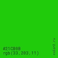 | RGB | rgb(33, 203, 11) |