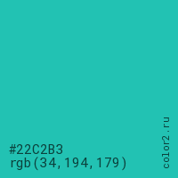 | RGB | rgb(34, 194, 179) |