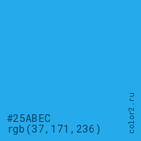 Цвет #25ABEC в цветовой модели RGB обозначается тремя октетами (37, 171, 236) в десятичном формате и #25ABEC в шестнадцатиричном (hex) формате, которые являются интенсивностью красного 37 (hex 25), интенсивность зелёного 171 (hex AB) и интенсивность синего 236 (hex EC).