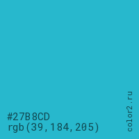 | RGB | rgb(39, 184, 205) |