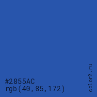 Цвет #2855AC в цветовой модели RGB обозначается тремя октетами (40, 85, 172) в десятичном формате и #2855AC в шестнадцатиричном (hex) формате, которые являются интенсивностью красного 40 (hex 28), интенсивность зелёного 85 (hex 55) и интенсивность синего 172 (hex AC).