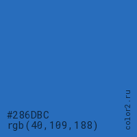 Цвет #286DBC в цветовой модели RGB обозначается тремя октетами (40, 109, 188) в десятичном формате и #286DBC в шестнадцатиричном (hex) формате, которые являются интенсивностью красного 40 (hex 28), интенсивность зелёного 109 (hex 6D) и интенсивность синего 188 (hex BC).
