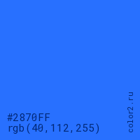 Цвет #2870FF в цветовой модели RGB обозначается тремя октетами (40, 112, 255) в десятичном формате и #2870FF в шестнадцатиричном (hex) формате, которые являются интенсивностью красного 40 (hex 28), интенсивность зелёного 112 (hex 70) и интенсивность синего 255 (hex FF).
