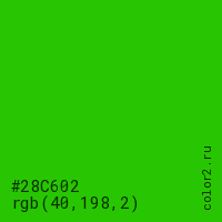 | RGB | rgb(40, 198, 2) |