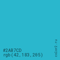 Цвет #2AB7CD в цветовой модели RGB обозначается тремя октетами (42, 183, 205) в десятичном формате и #2AB7CD в шестнадцатиричном (hex) формате, которые являются интенсивностью красного 42 (hex 2A), интенсивность зелёного 183 (hex B7) и интенсивность синего 205 (hex CD).