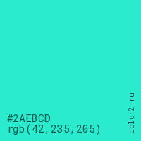 Цвет #2AEBCD в цветовой модели RGB обозначается тремя октетами (42, 235, 205) в десятичном формате и #2AEBCD в шестнадцатиричном (hex) формате, которые являются интенсивностью красного 42 (hex 2A), интенсивность зелёного 235 (hex EB) и интенсивность синего 205 (hex CD).