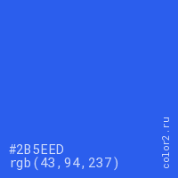 Цвет #2B5EED в цветовой модели RGB обозначается тремя октетами (43, 94, 237) в десятичном формате и #2B5EED в шестнадцатиричном (hex) формате, которые являются интенсивностью красного 43 (hex 2B), интенсивность зелёного 94 (hex 5E) и интенсивность синего 237 (hex ED).