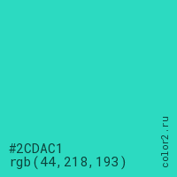 Цвет #2CDAC1 в цветовой модели RGB обозначается тремя октетами (44, 218, 193) в десятичном формате и #2CDAC1 в шестнадцатиричном (hex) формате, которые являются интенсивностью красного 44 (hex 2C), интенсивность зелёного 218 (hex DA) и интенсивность синего 193 (hex C1).