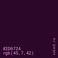 | RGB | rgb(45, 7, 42) |