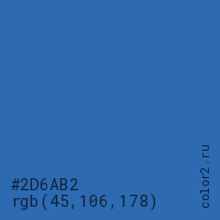 Цвет #2D6AB2 в цветовой модели RGB обозначается тремя октетами (45, 106, 178) в десятичном формате и #2D6AB2 в шестнадцатиричном (hex) формате, которые являются интенсивностью красного 45 (hex 2D), интенсивность зелёного 106 (hex 6A) и интенсивность синего 178 (hex B2).