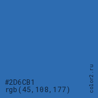 Цвет RGB(45, 108, 177) в процентом отношении количества цвета состоит из 17.6% красного (red), 42.4% зелёного (green) и 69.4% синего (blue).