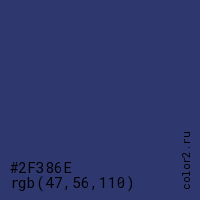 Цвет #2F386E в цветовой модели RGB обозначается тремя октетами (47, 56, 110) в десятичном формате и #2F386E в шестнадцатиричном (hex) формате, которые являются интенсивностью красного 47 (hex 2F), интенсивность зелёного 56 (hex 38) и интенсивность синего 110 (hex 6E).