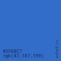 Цвет #2F6BC7 в цветовой модели RGB обозначается тремя октетами (47, 107, 199) в десятичном формате и #2F6BC7 в шестнадцатиричном (hex) формате, которые являются интенсивностью красного 47 (hex 2F), интенсивность зелёного 107 (hex 6B) и интенсивность синего 199 (hex C7).