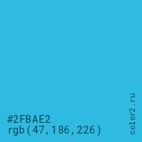 Цвет #2FBAE2 в цветовой модели RGB обозначается тремя октетами (47, 186, 226) в десятичном формате и #2FBAE2 в шестнадцатиричном (hex) формате, которые являются интенсивностью красного 47 (hex 2F), интенсивность зелёного 186 (hex BA) и интенсивность синего 226 (hex E2).