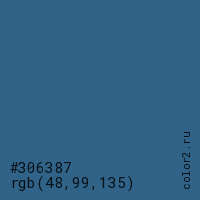 Цвет #306387 в цветовой модели RGB обозначается тремя октетами (48, 99, 135) в десятичном формате и #306387 в шестнадцатиричном (hex) формате, которые являются интенсивностью красного 48 (hex 30), интенсивность зелёного 99 (hex 63) и интенсивность синего 135 (hex 87).