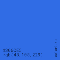 Цвет #306CE5 в цветовой модели RGB обозначается тремя октетами (48, 108, 229) в десятичном формате и #306CE5 в шестнадцатиричном (hex) формате, которые являются интенсивностью красного 48 (hex 30), интенсивность зелёного 108 (hex 6C) и интенсивность синего 229 (hex E5).