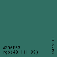 Цвет #306F63 в цветовой модели RGB обозначается тремя октетами (48, 111, 99) в десятичном формате и #306F63 в шестнадцатиричном (hex) формате, которые являются интенсивностью красного 48 (hex 30), интенсивность зелёного 111 (hex 6F) и интенсивность синего 99 (hex 63).
