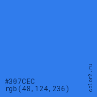 Цвет #307CEC в цветовой модели RGB обозначается тремя октетами (48, 124, 236) в десятичном формате и #307CEC в шестнадцатиричном (hex) формате, которые являются интенсивностью красного 48 (hex 30), интенсивность зелёного 124 (hex 7C) и интенсивность синего 236 (hex EC).