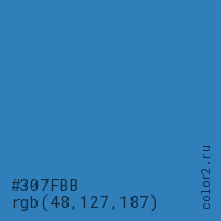 Цвет #307FBB в цветовой модели RGB обозначается тремя октетами (48, 127, 187) в десятичном формате и #307FBB в шестнадцатиричном (hex) формате, которые являются интенсивностью красного 48 (hex 30), интенсивность зелёного 127 (hex 7F) и интенсивность синего 187 (hex BB).